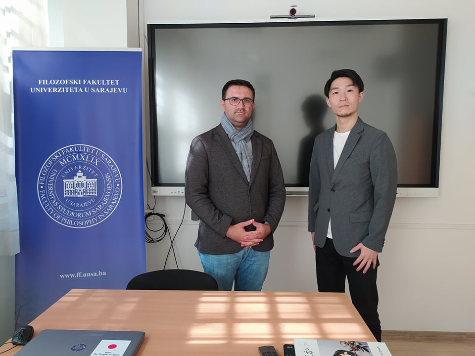Prodekan Duranović je gosta iz Japana upoznao sa Filozofskim fakultetom UNSA, njegovom historijom i trenutnom situacijom posebno se fokusirajući na pitanje programa podučavanja japanskog jezika i kulture koji se realiziraju kroz ponudu izbornih predmeta na Fakultetu, kao i kroz kurseve namijenjene građanstvu u čijoj realizaciji je učestvovalo više desetina polaznika u proteklim godinama.